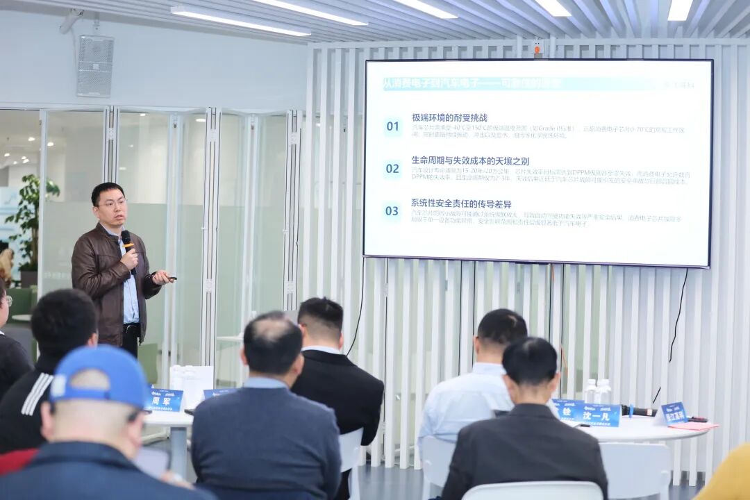 汽车芯片的可靠性是产业发展的基石。上海张江芯享测半导体科技有限公司副总经理周军在《汽车芯片可靠性测试分析》专题分享中强调,汽车芯片需承受-40℃至150℃的极端环境,设计寿命长达15-20年,失效成本远高于消费电子芯片,且承担着重要的系统性安全责任。面对先进工艺与封装带来的测试挑战,张江芯享测研发了高密度探针测试、晶圆直连测试等解决方案,推出BT150超大规模集成电路老化测试系统,可实现单芯片100-500W的老化测试及1000小时稳态寿命测试。我们还拥有价值超1.3亿元的国际一流测试设备,提供全链条一站式测试服务,已为张江算力、车规等企业提供可靠技术支撑。