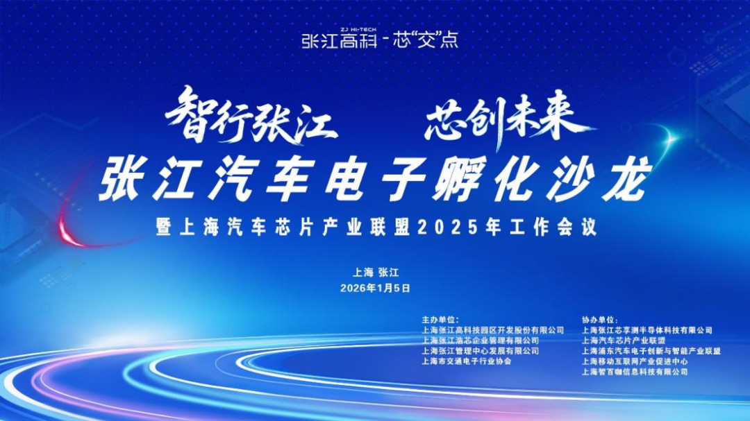 1月5日,“智行张江,芯创未来——张江汽车电子孵化沙龙暨上海汽车芯片产业联盟2025年工作会议”在上海张江成功举办。作为“引领区2026抓投资优环境促发展大会”的重要组成部分,本次活动汇聚了汽车电子行业专家、企业代表、投资机构人士等众多嘉宾,围绕智能汽车产业发展趋势、芯片可靠性测试、智能网联汽车高质量发展路径等核心议题展开深度交流,搭建起产业资源联动与合作共赢的高效平台。